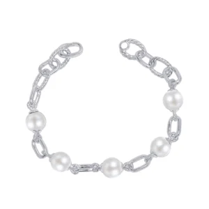 925 Sterling Silver Handmade Simulated Pearl Paperclip Links Chain Bracelet for Women