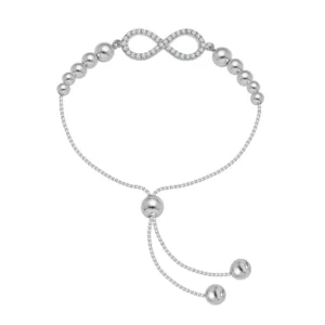 925 Sterling Silver Infinity Twisted Zirconia Adjustable Bolo Bracelet for Women