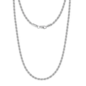925 Sterling Silver Italian Diamond-Cut Twisted Braided Rope Chain Necklace for Women 3 MM