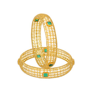Elevate your style with our Fantastic Green Stone Gold Bangles. Featuring a stunning green stone design set in luxurious gold, these bangles are perfect for any occasion. Add a ...